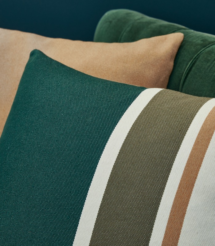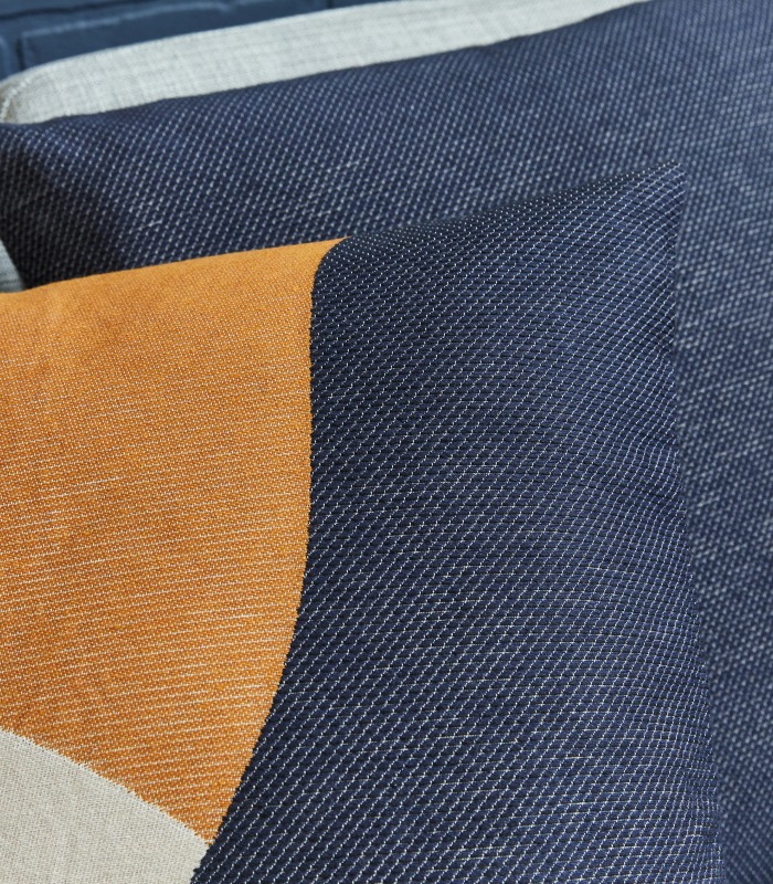L’aspect extérieur du coussin constitue l’une des étapes les plus importantes. C’est avec notre partenaire Les Tissages de Charlieu (Rhône Alpes) que nous avons réalisé cette phase déterminante. Fort d’un savoir-faire depuis plus de 50 ans, c’est dans le métier du jacquard que demeure son expertise. Nos poches intérieures (accueillant le rembourrage) et extérieures ont été entièrement tissées avec des fils coton et polyester recyclés issus de chutes de confection textile et de bouteilles plastiques.